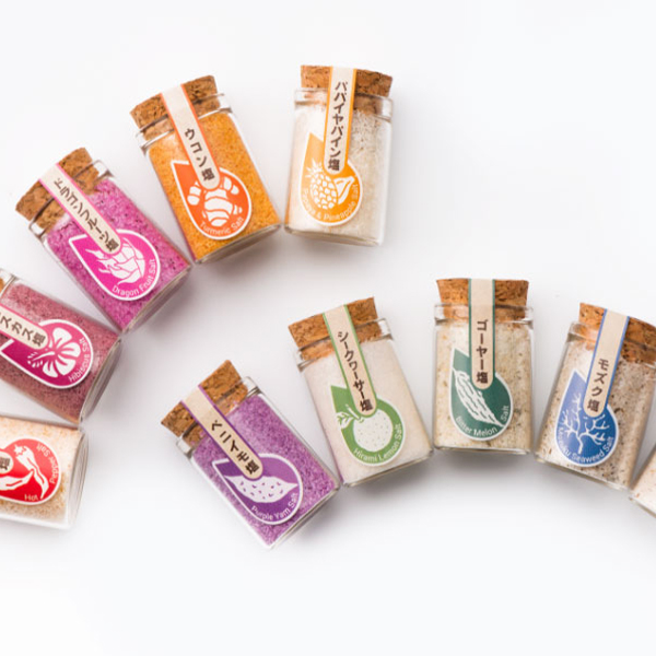 沖縄の美しい海で採れたお塩を販売している「塩彩SHIOSAI」のプチボックスには、沖縄の自然の恵みがぎゅっと詰まった味わい豊かなフレーバーソルトが勢ぞろい。島トウガラシ・ゴーヤ・紅イモなど沖縄を感じられる物ばかり。カラフルでかわいいパッケージは女子ウケ間違いなし小瓶に入っておりばらまきギフトにもGOOD。