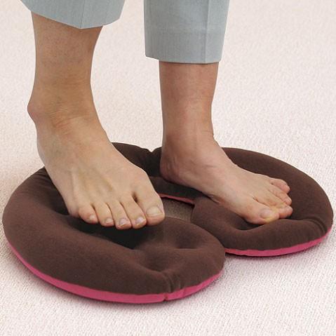 踏むことで自然とウォーキングができるクッション。天然素材に近い「ネオライトサンド」を使用。砂浜を歩くような心地よい感触で、ほどよく筋肉に負荷をかける仕組みの足踏みクッションです。おしりの下に敷く、シートクッションとしても使えますよ。