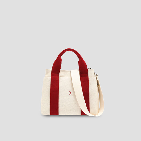 韓国発の新進ブランド「JOSEPH AND STACEY」のキャンバストート。タブレットやドリンクタンブラーが収まるちょうどよいサイズ感。スナップボタンでマチを調整できます。ブランドを象徴する「Lucky Scissors」=ハサミの刺繍がかわいい!