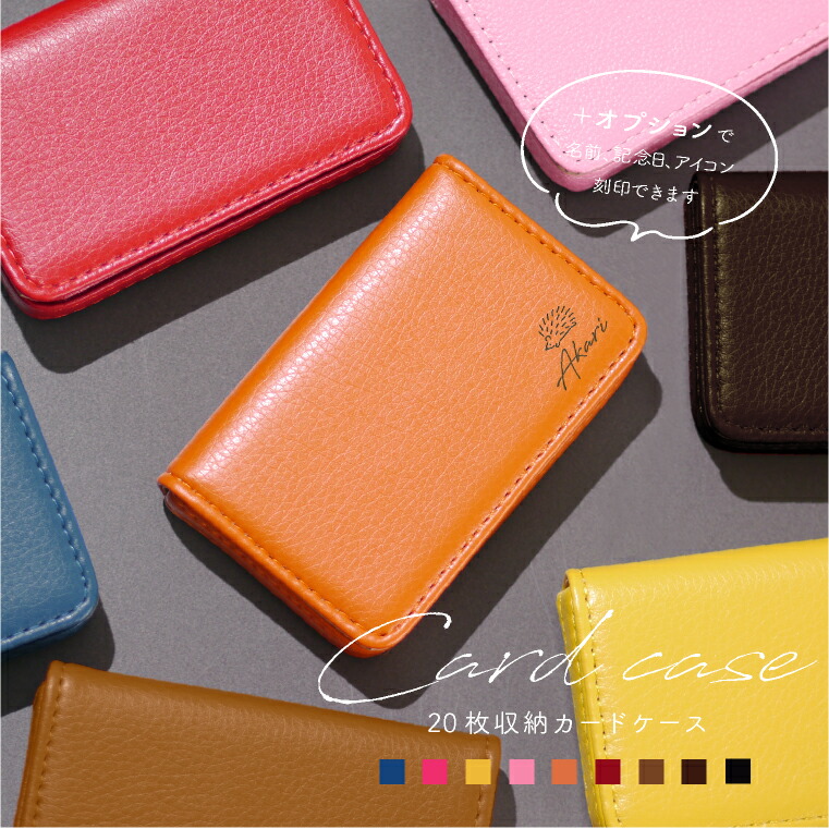 こちらの名刺入れは、高級感のある合成皮革素材。マチもしっかりあるので、いただいた名刺を入れておくのにもぴったり。普段はブランド物を持ち歩いているという女性へのサブ用ケースとしてプレゼントするのもありですよ。追加オプションで名入れも可能。