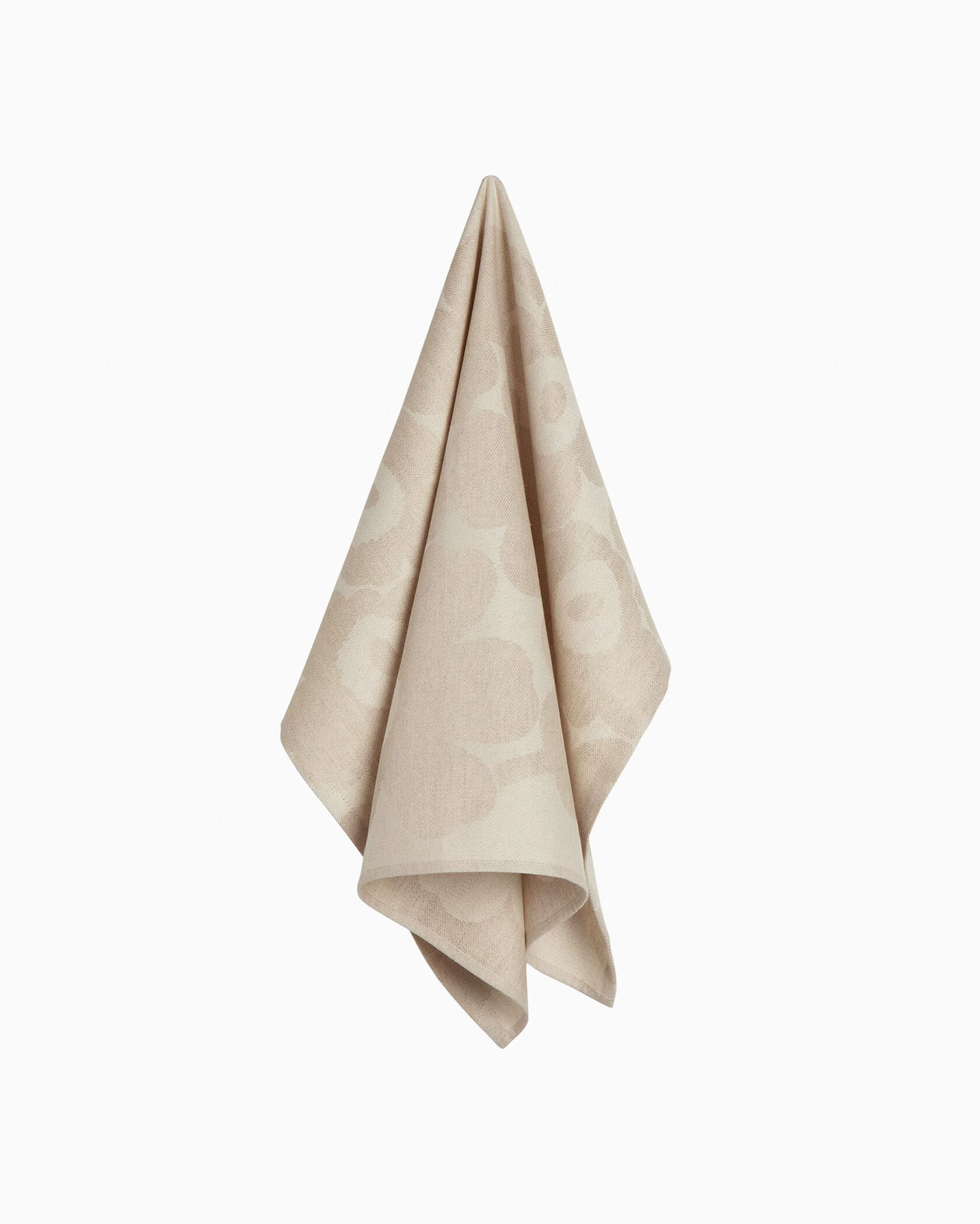 新築祝いにおすすめなのは、キッチンまわりに優しく溶けこむUnikko柄キッチンタオル。コットン×麻の素朴な風合いとニュアンスカラーが相まって、ただ掛けておくだけでなんだかおしゃれ。