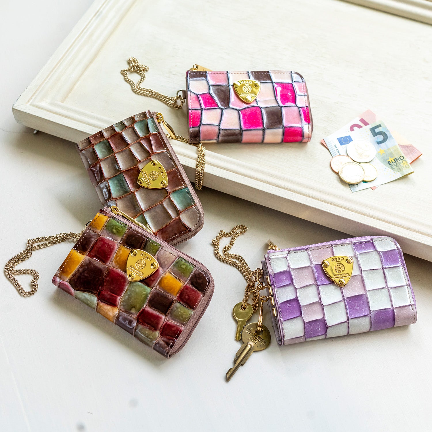 マルチカラーが大人可愛いキーウォレット。財布とキーケースが一体化されたデザインで、鍵の他に小銭やカードを入れておくスペースが。ちょっとした買い物ならこれ1つで出歩けてとっても便利ですよ。バッグチャームにもなるチェーン付き。