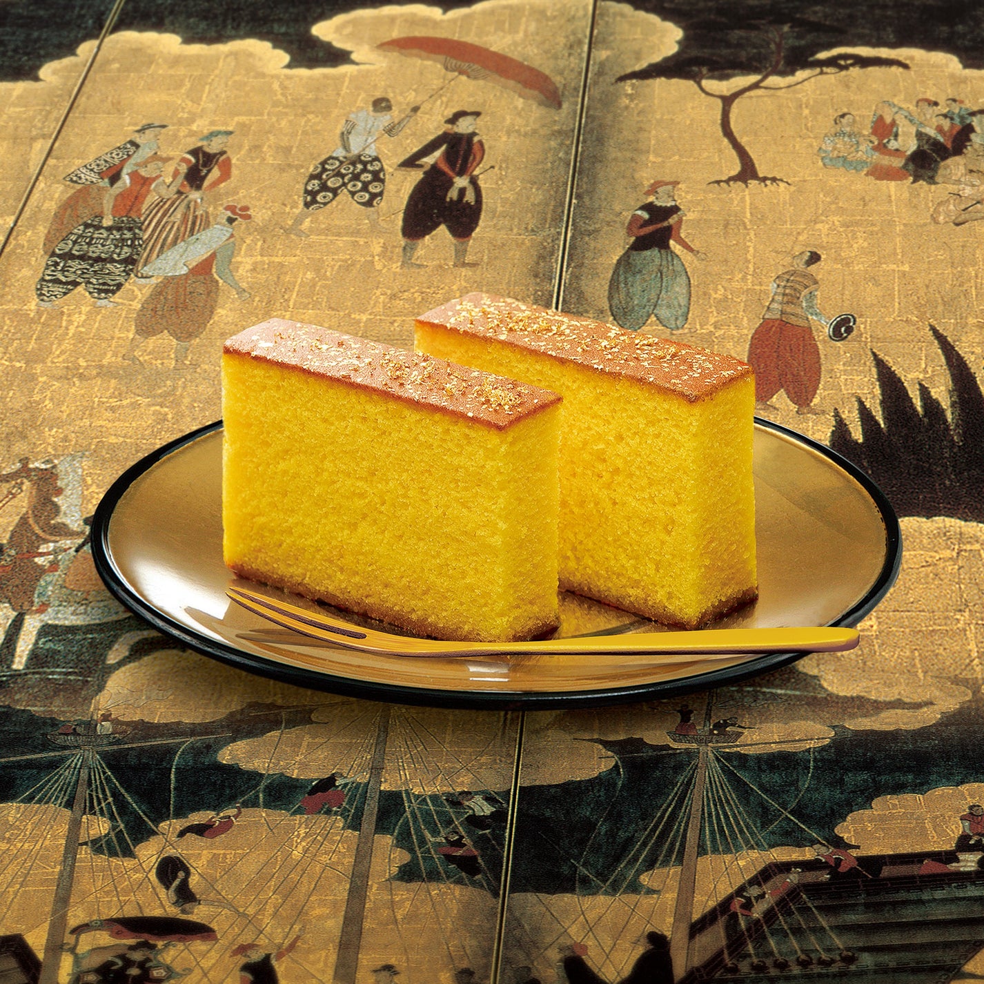 千利休の時代を彷彿させる、幻の味を再現した「江久庵」の最高級カステラ「黄金の哲学」。モンドセレクション金賞を14度も受賞したこのカステラは、目も覚めるほどの美しい黄金色が特徴で、厳選された素材と卵が贅沢に使われています。カステラの上の金箔と、まばゆいばかりの黄金色のパッケージも特別な日にふさわしい逸品。