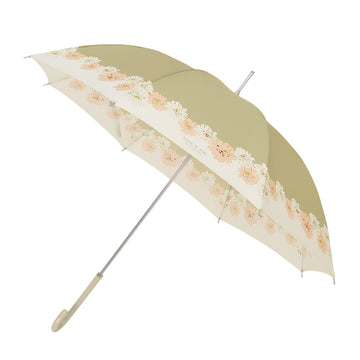 「PAUL & JOE」の傘は、ブランドモチーフのクリザンテーム柄が入った大人可愛いデザイン。ベージュカラーのシンプルでシックなアイテムは通勤時にも活躍します。晴雨兼用で使えるため、春から夏にかけては特に需要も高くなりますよ。