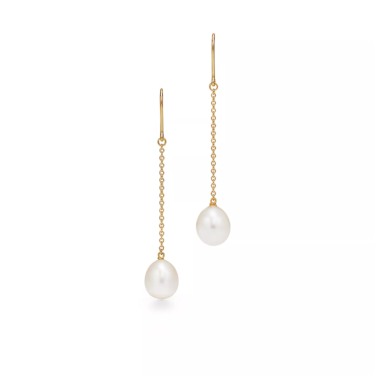 ゆらゆら揺れるパールがエレガントな「ティファニー」のチェーンピアス。ほのかな楕円形の淡水パールとゴールドチェーンで、上品さとカジュアルさも持ち併せたアクセサリー。動きのあるデザインは、ショートヘアやまとめ髪の方にも似合いますよ。