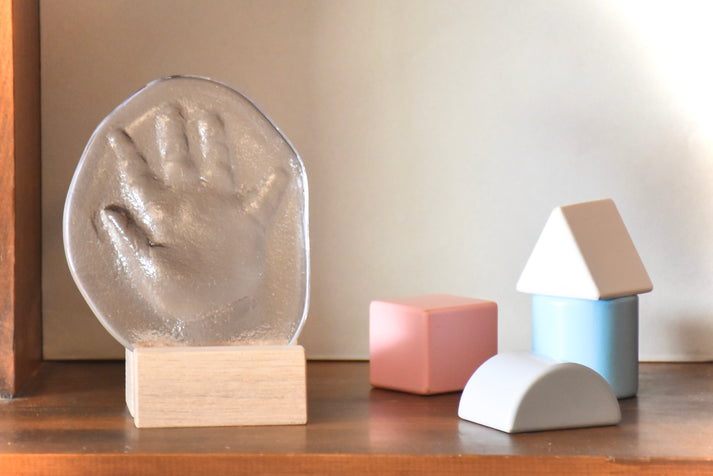 自分で塗ったり組み立てたり……がまだ難しい乳幼児のお孫さんからは、成長記録を兼ねて“手形・足形”を使った記念品をプレゼントしましょう。ガラス工房「fresco」の「こどもてがた」は、自宅で手形や足形の原型をとってアトリエに送るだけで、ガラス作品になって届く仕組みの専用キット。
