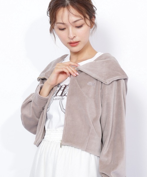 「JILL by JILL STUART」のショート丈パーカー。見た目にもあたたかいベロア素材に、ジップを開くと印象が変わる、トレンド感あふれるデザイン。袖口と裾にリブ編みは使っていないので、大人っぽく着こなせます。軽やかなロングスカートを合わせれば、デートファッションにもピッタリ!